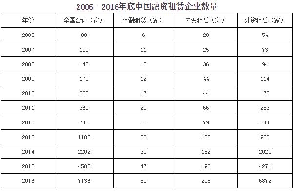 据中国租赁联盟和天津滨海融资租赁研究院测算,2016年底,中国融资租赁企业总数是2006年底的89.2倍。